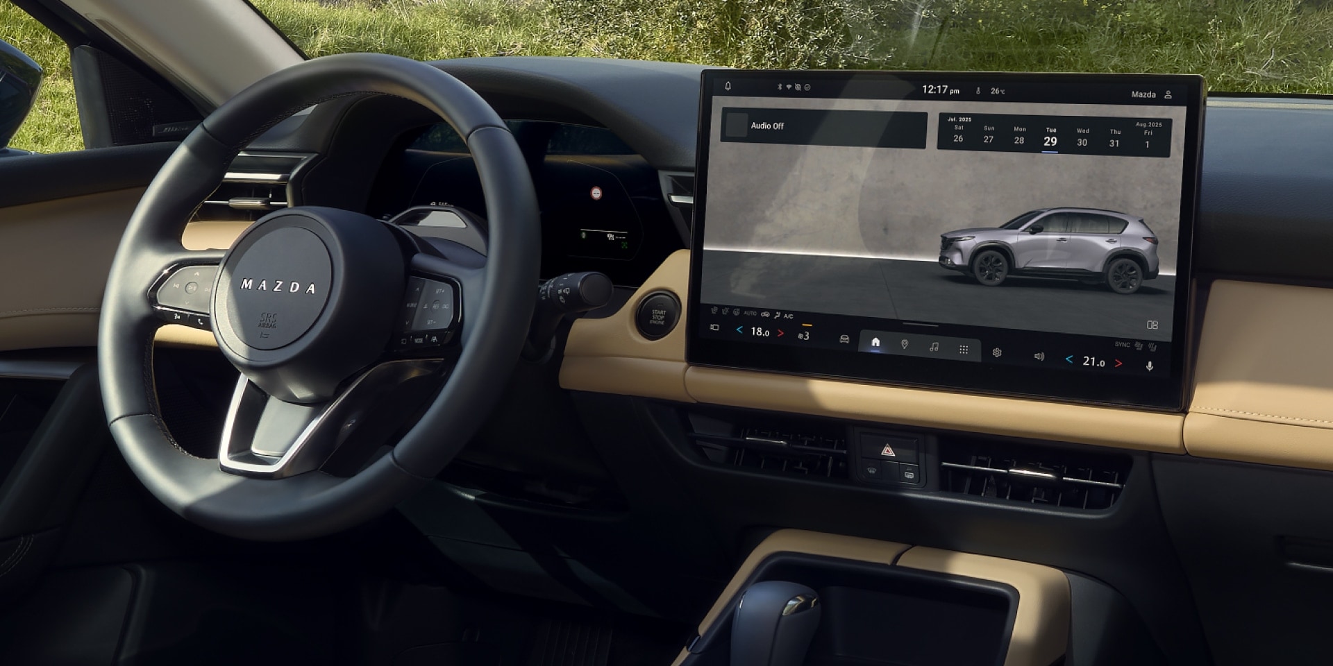 Stay connected and focused with an available 15.6-inch center touchscreen display, the largest ever offered on a Mazda vehicle. Our HMI philosophy delivers multiple easy-to-use options for interacting with the vehicle, including the touchscreen, tactile steering wheel controls, and voice controls.